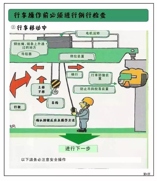 車間里很多都有行車,行車操作環(huán)節(jié)很重要,存在操作失誤及設(shè)備出現(xiàn)故障的可能性,存在造成人員傷亡和物資損壞的風(fēng)險,今天咱們讓老王在車間演示一遍,看看有哪些注意事項!