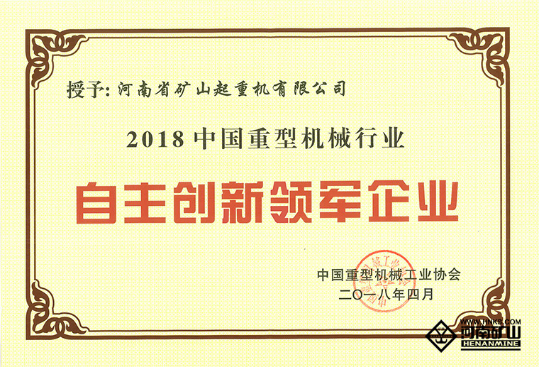 作為本次大會的重要內(nèi)容,大會隆重表彰了2018中國重型機械行業(yè)“自主創(chuàng)新領軍企業(yè)”及“自主創(chuàng)新先進企業(yè)”。河南礦山榮獲“自主創(chuàng)新領軍企業(yè)”榮譽稱號。
